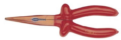 全身绝缘,包括工作区。 DIN / ISO 5745 铬钒钢材质,可在电压1000V以下带电工作。 钳尖45°向下倾斜,更适合分开乱线,夹缝孔中作业。 双材质手柄,握紧力更强,并带有保护设计。
