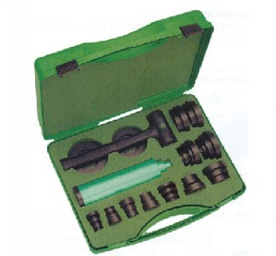 用于安全、精确、快速可靠地将滚动轴承安装到孔中或轴上。 也可用于安装轴套、密封圈和皮带轮等零件。 适合装配深度220mm以内,孔径10-50mm,外径26-100mm的滚动轴承。 包括SKF729125系列轴承、SKF、FAG、Timken和NIN进口轴承。 包括33个不同规格的锤击套环,5个锤击套管,长度220mm。 防爆无反弹锤1把,共39件套。 即可用于安装,也可用于拆卸。 铁盒盖上的配合表表明哪种套环配哪种套管,用于安装多大尺寸的轴承。 使用这种专用工具安装轴承,轴承侧面各受力均匀,精度高。 由于