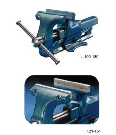用于夹持工件,进行钳工划线、锯切、锉削、钻孔、 绞孔、攻丝和套扣作业。 模具锻造,尺寸精密准确,结构设计先进,锻钢材质, 主钳口表面淬火硬化,夹管钳口淬火硬化,经久耐用。 可直接安装在工作台上,用主钳口夹紧加工零件, 用主钳口下方的专用管钳口夹紧管件加工。 钳工车间与培训中心必备工具。 可选购配置旋转台和升降装置,使台虎钳可以旋转和升高。 钳口可替换。