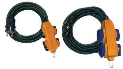 Vierfach-Verteiler 5m spritzwassergeschützt 230V Gummikabel H07RN-F3x1,5mm²