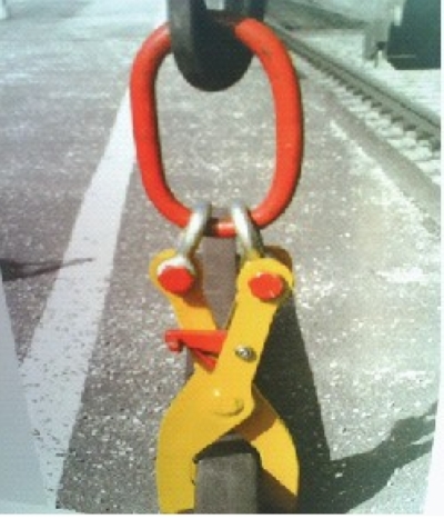 用途:用于钢轨吊装 技术要求:夹钳式吊钳, 吊钳上部挂在吊机起重 钩上,下部卡紧轨头, 实现钢轨搬运。自重不 大于11kg。带安全自锁。 优质钢锻造。