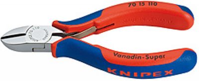 精密的剪切刀口适于剪切软线和硬线;切割硬度约为洛氏硬度62HRC;头部较窄,适用于小空间的操作;型 1:偏刃,配备复位弹簧;长度110,头部镀铬,双色双重材料手柄