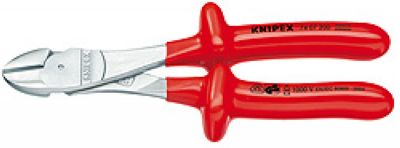 采用锻制的轴,用于重型剪切;适用剪切各种类型的线,包括钢琴丝; 长的斜口钳适用于剪切16mm2以下的铜线和35mm2以下的铝线;省力21%,长度250,头部镀铬,浸塑绝缘手柄
