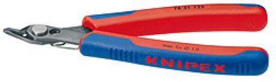 精磨的剪切刀口,无偏刃,适于齐平剪切工作;精密成形的尖端亦可齐根剪切直径0.2mm的材料;采用不锈钢铆钉接合低磨擦剪切使操作疲劳减到最少;采用复位弹簧实现有限制的复位;手柄配有双色双重材料手柄,红色和蓝色;剪切刀口硬度约为洛氏硬度60HRC;长度125,头部不锈钢,双色双重材料手柄