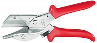 用于无变形塑料、橡胶和软木料的剪切,亦可剪切最大宽度为56mm的带状电缆;带护栏角的切割底座可以替换,可分别用于45O、60O、75O和90O角切割;配置复位弹簧,锁紧装置,长度215,头部镀铬,塑料套柄,刀片长度56