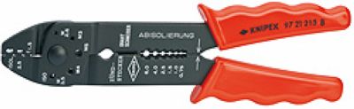用于切割电缆,剥线,和压接绝缘或非绝缘的端子、接头和插塞式接头;螺纹孔的设计用以切割铜和黄铜制品(螺纹M2.6/3.0/3.5/4.0和5.0mm);长度215,头部磨光,塑料套柄,应用范围非绝缘,开放式插塞接头(6.3mm)