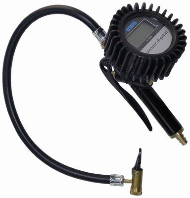 数字式压力表: ? 80,过压保护到 16 bar,橡胶保护套,压力范围: 0 - 12 bar, 精密等级 0.05 bar(误差 < 0.08 bar);工作温度-10 °C 到 +60 °C;扳手阀连接头, 适用于所有带VG8螺纹的轮胎气嘴;也可用于充氮气
