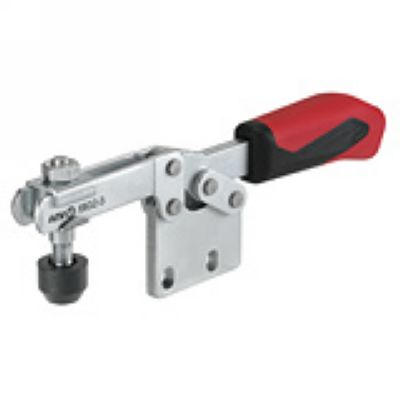 with open clamping arm and vertical base. Galvanized and passivated. Rivets made of stainless steel, which, for sizes 2 to 5, run in hardened bushings. Bearings are pre-lubricated. Ergonomic, oil-resistant handle with large grip surface and soft component