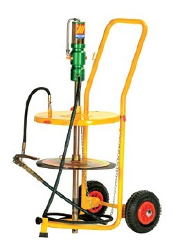 用于25kg油桶,配有: 气动黄油泵1:60 手推车 桶盖?350mm 铠装软管3m,G2” 带管油枪