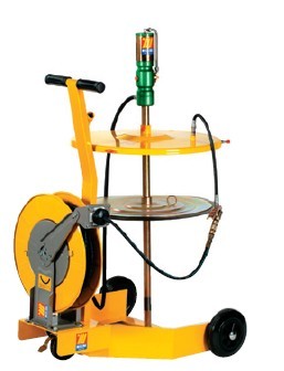 用于200kg油桶,配有: 气动黄油泵1:60 三轮手推车 桶盖?600mm 随动板?590mm 铠装软管1.5m,G2” Z型转接头 带管油枪 黄油软管卷盘10m,G1/4”