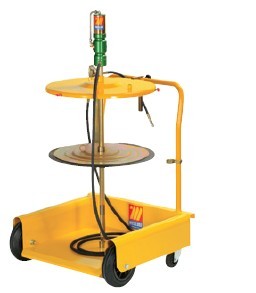 用于50kg油桶,配有: 气动黄油泵1:60 四轮手推车 桶盖?420mm 随动板?400mm 铠装软管5m,G2” 带管油枪