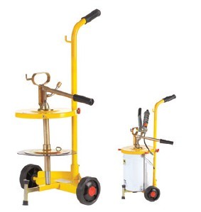 用于20kg油桶,配有: 手动泵 手推车 桶盖?320mm 随动板?310mm 2m橡胶管 球阀M10x1 带4片爪黄油嘴的150mm喷管