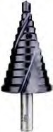 3 Spankammern, spiralgenutet, auswechselbarer Zentrierbohrer TiAlN-beschichtet Stufen ? 9 - 12 - 15 - 18 - 21 - 24 - 27 - 30 - 33 - 36 mm (Stufe ?40“ dient zum Entgraten)