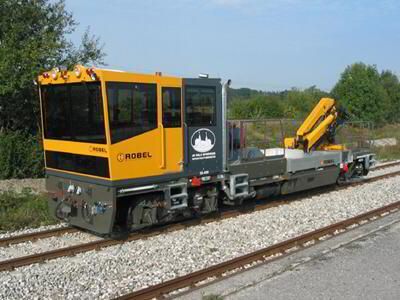 有一个新液压传动万用工具车 UIC可调轮轴 静液压传动 气动牵引力可达75 kN 多重辅助设备:起重机,自卸车,钢轨装载轮等