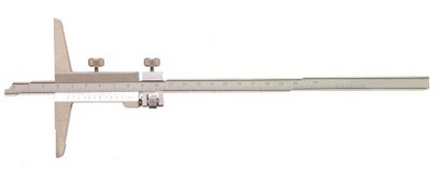 由不锈钢制成,测量孔(盲孔与阶梯孔)和槽的深度 高精度激光刻度,带螺栓 用于测量直径150mm以内的盲孔、宽度500mm 以内的凹槽和阶梯形表面的深度 主尺测量头部削去一角,减少测量接触面积,提高测量准确度 主尺和游标尺框高精度激光刻线,带锁紧螺钉