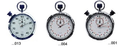 高精度机械秒表,用于工业或者体育活动, 金刚石抛光金属外壳带有系索,防震,防尘,防水。 型号...001-...004增加的特征: 双秒表,按下手机即可记录任意数量的中间时间。 型号...007-...010增加的特征: 最常用的计时系统,适用于所有简单的 不间断时间测量,也是卖的最多的型号。 型号...013增加的特征: 叠加秒表,在每个单一时间停止。
