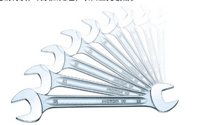 DIN3110 开口偏左15°,空间狭小,作业对象螺栓螺母。 角度不合适时,将开口扳手翻过来使用。 手柄两面凹,剖面为双T型结构,抗弯强度大,显著减轻自重。 干活轻松,铬合金钢材质,调质热处理,表面亚光镀铬。