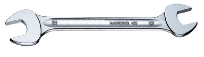 ISO1085 开口偏左15°,空间狭小,作业对象螺栓螺母。 角度不合适时,将开口扳手翻过来使用。 手柄两面凹,剖面为双T型结构,抗弯强度大,显著减轻自重。 干活轻松,铬合金钢材质,调质热处理,表面亚光镀铬